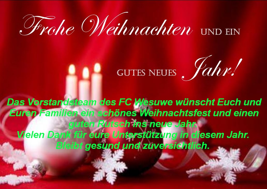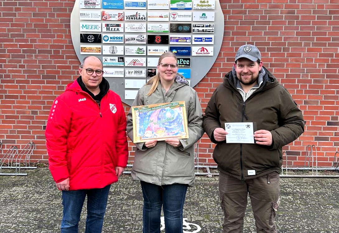 23. Dezember 2025Sehr zur Freude von Volker Bahns aus Wesuwe gewann sein Adventskalender der Werbegemeinschaft Wesuwe mit der Nummer 609 den VIP-Gutschein des FC Wesuwe. Damit kann er im kommenden Jahr bei einem Heimspiel einer Mannschaft des FC Wesuwe bis zu acht Personen einladen inclusive einer kostenfreien Versorgung mit Speisen und Getränken bis zu einem Gesamtwert von […]