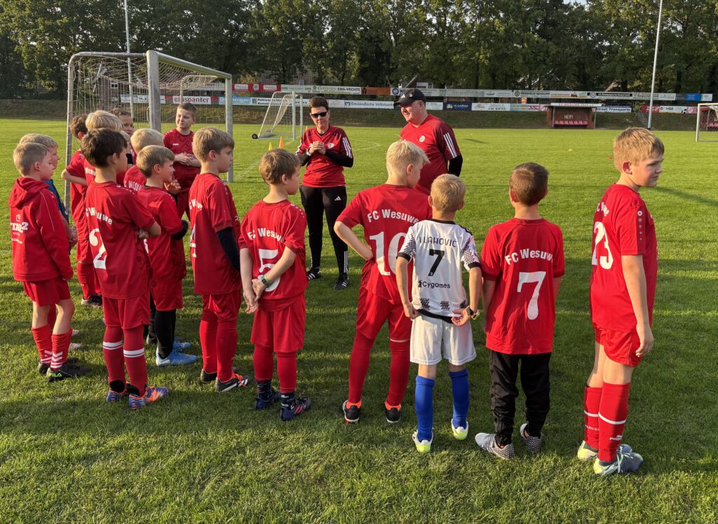 Gleichzeitig erhielten die zehn begleitenden Trainer und Betreuer des FC Wesuwe eine praxisnahe Fortbildung direkt am Spielfeldrand.